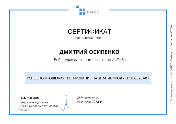 Четыре года назад мы решили перенести наш интернет-магазин с устаревшей платформы opencart на cs-cart. Перебрали много программистов и в итоге решили остановиться на команде из АйПи5. Специалисты компании помогли нам на всех этапах, от поднятия сервера, до...